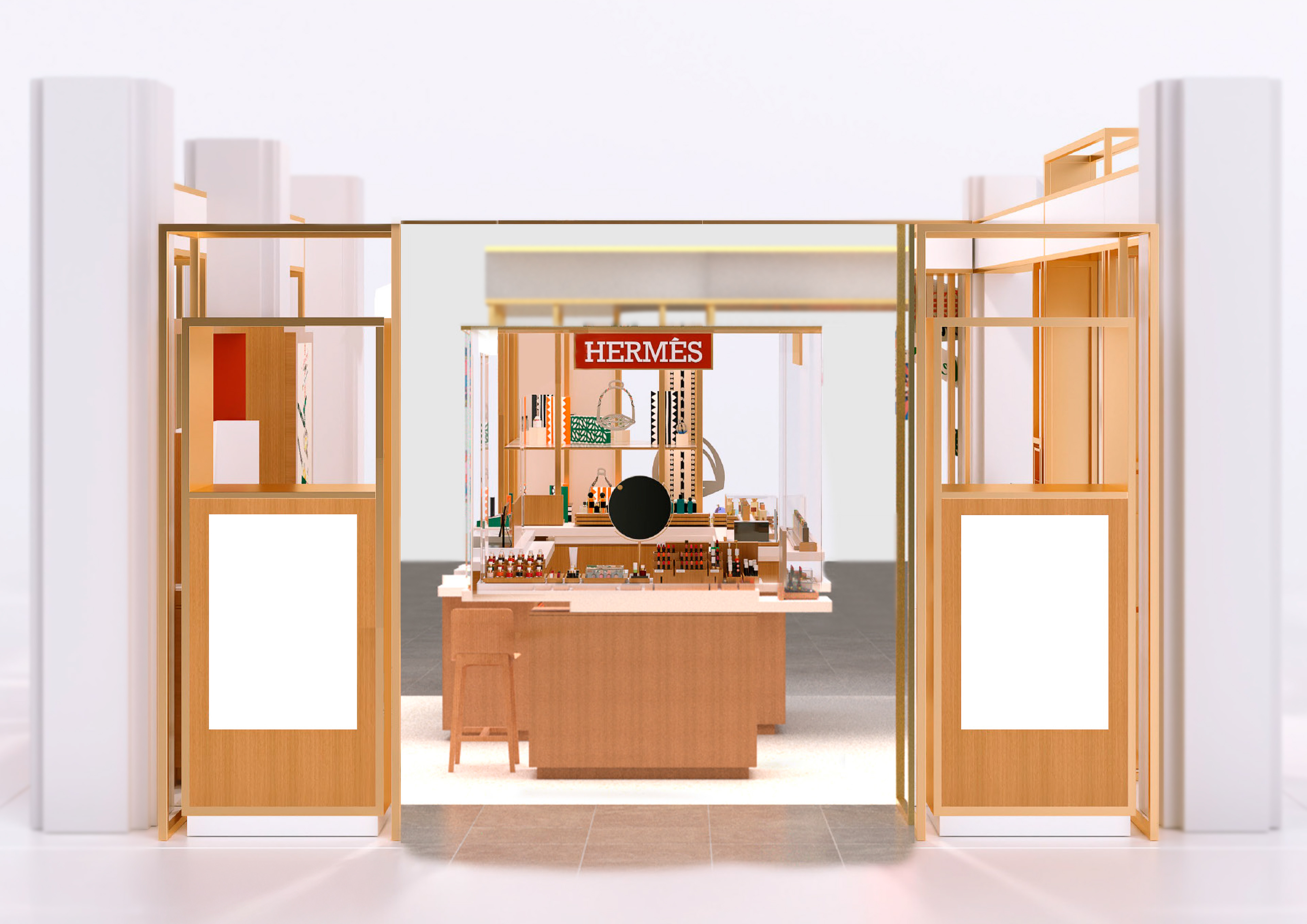 Updated the Hermès store at Harrods for the new Christmas campaign, designing and visualising displays that aligned with the brand’s festive identity. I developed the 3D layouts and models, taking into account exact store dimensions, technical requirements, safety standards, and ensuring all materials were fireproof.
